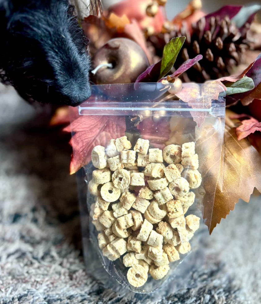 the holy grail of picky eater approved treats. hands down Motherpuppin’s most requested to return treat for every season. You get a mix of both heart shaped trainers as well as donut shaped trainers in each bag.