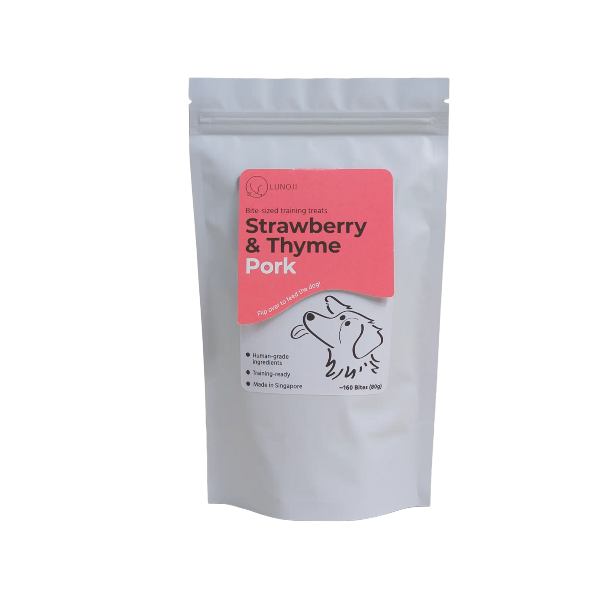 Made with just three human-grade ingredients, our gently air-dried Strawberry & Thyme Pork is a guilt-free way to indulge your dog.